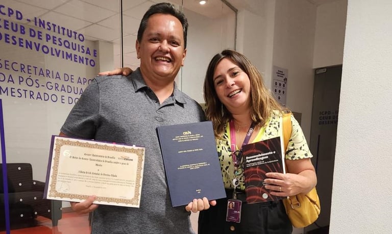 A Dissertação de Mestrado em Psicologia de Alberto Erich Steimber de Pereira Okada, defendida no UniCEUB (2023), investiga as experiências subjetivas de professores e estudantes do ensino superior enquanto trabalhadores, diante das mudanças intensas provocadas pela pandemia da Covid-19 e pela digitalização da educação, comparando as experiências de mudança do ensino presencial para o remoto e logo após pandemia da COVID-19, do ensino remoto ao presencial.